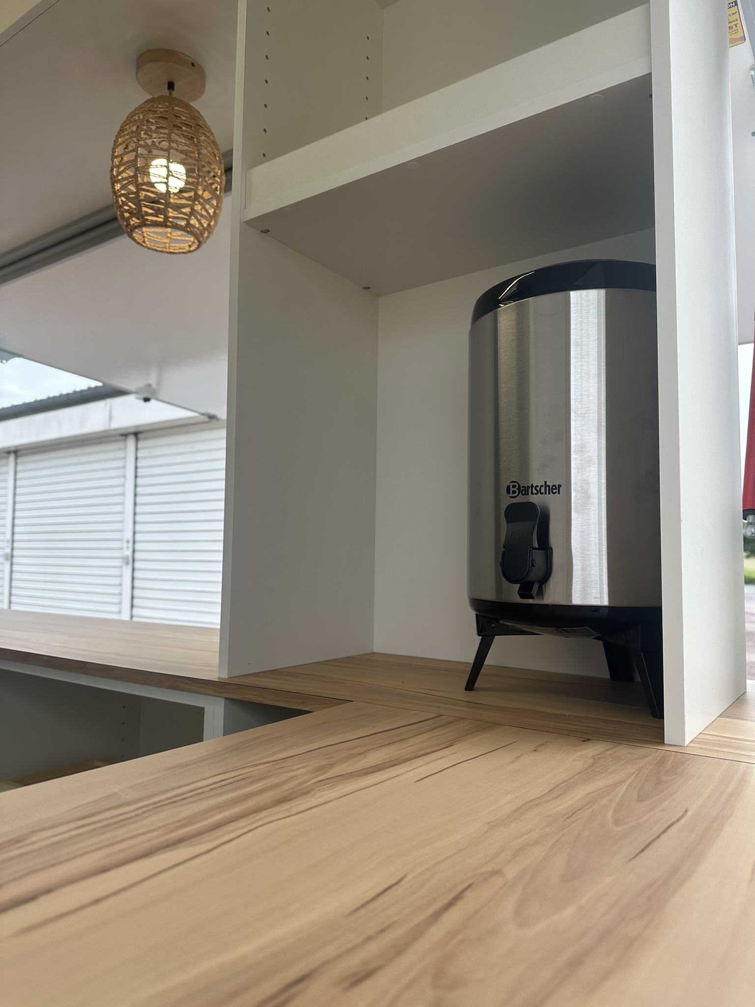 L'aménagement du foodtruck antillais a nécessité une planification méticuleuse et une exécution précise. Laromorque a conçu un **mobilier sur mesure** adapté aux besoins spécifiques de la cuisine antillaise. Chaque élément a été pensé pour optimiser l'espace restreint du véhicule tout en garantissant une efficacité maximale lors de la préparation des plats.