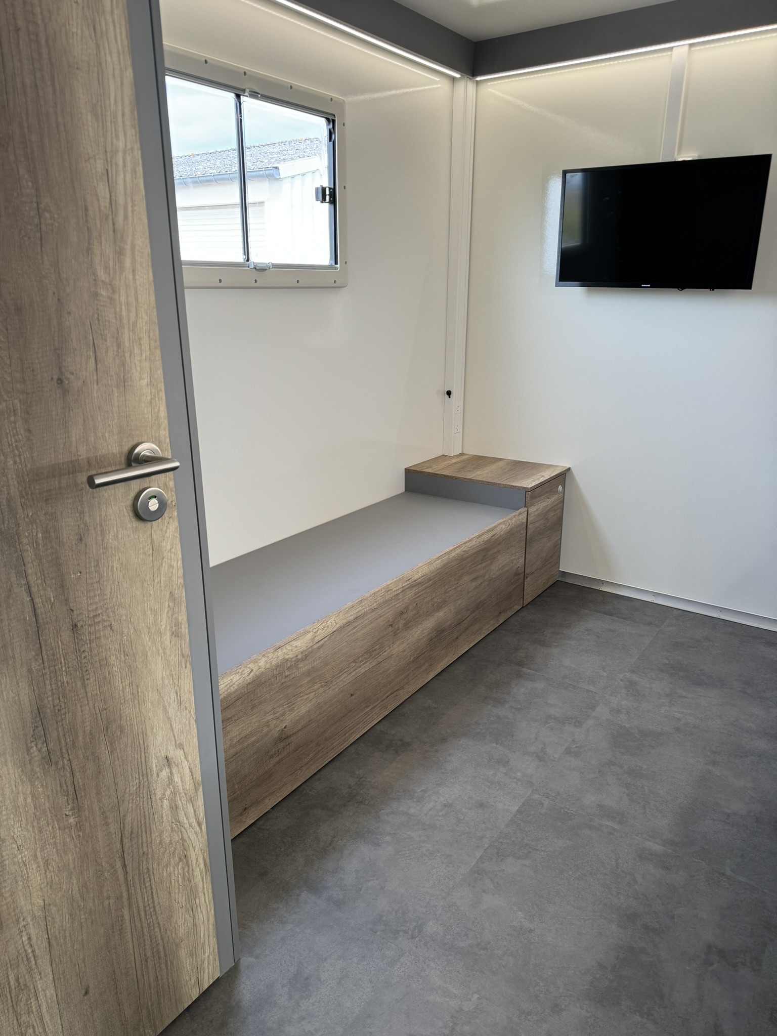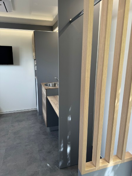 Le client faisait face à un besoin crucial : aménager une remorque en espace de vie complet pour des artistes, comprenant toutes les commodités nécessaires pour leur bien-être entre deux scènes ou tournages. C'est dans ce contexte que Laromorque est intervenue, forte de son expérience et de son savoir-faire en menuiserie et agencement.