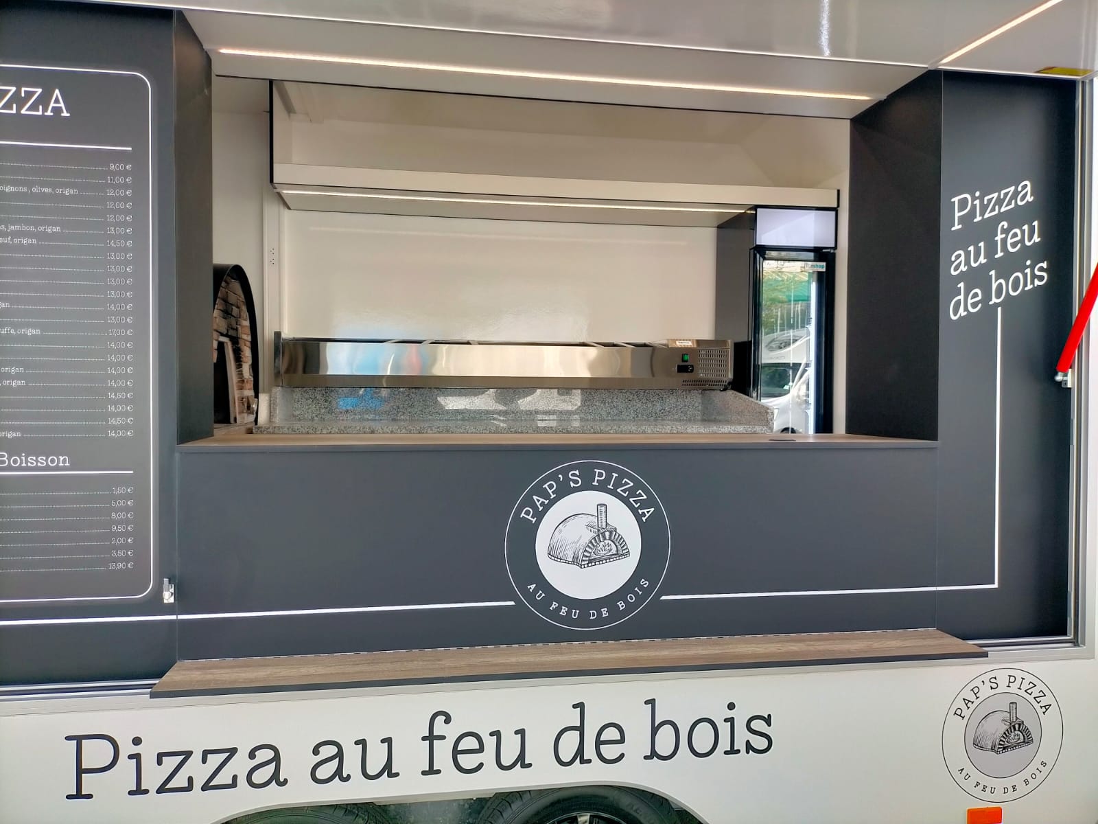 L'aménagement ne se limite pas au mobilier. Laromorque a également intégré des équipements professionnels essentiels pour la préparation des pizzas. Un **four à pizza** performant a été installé, permettant une cuisson rapide et homogène. Un **lave-main réglementaire** a été stratégiquement positionné, répondant ainsi aux normes d'hygiène en vigueur dans la restauration mobile.